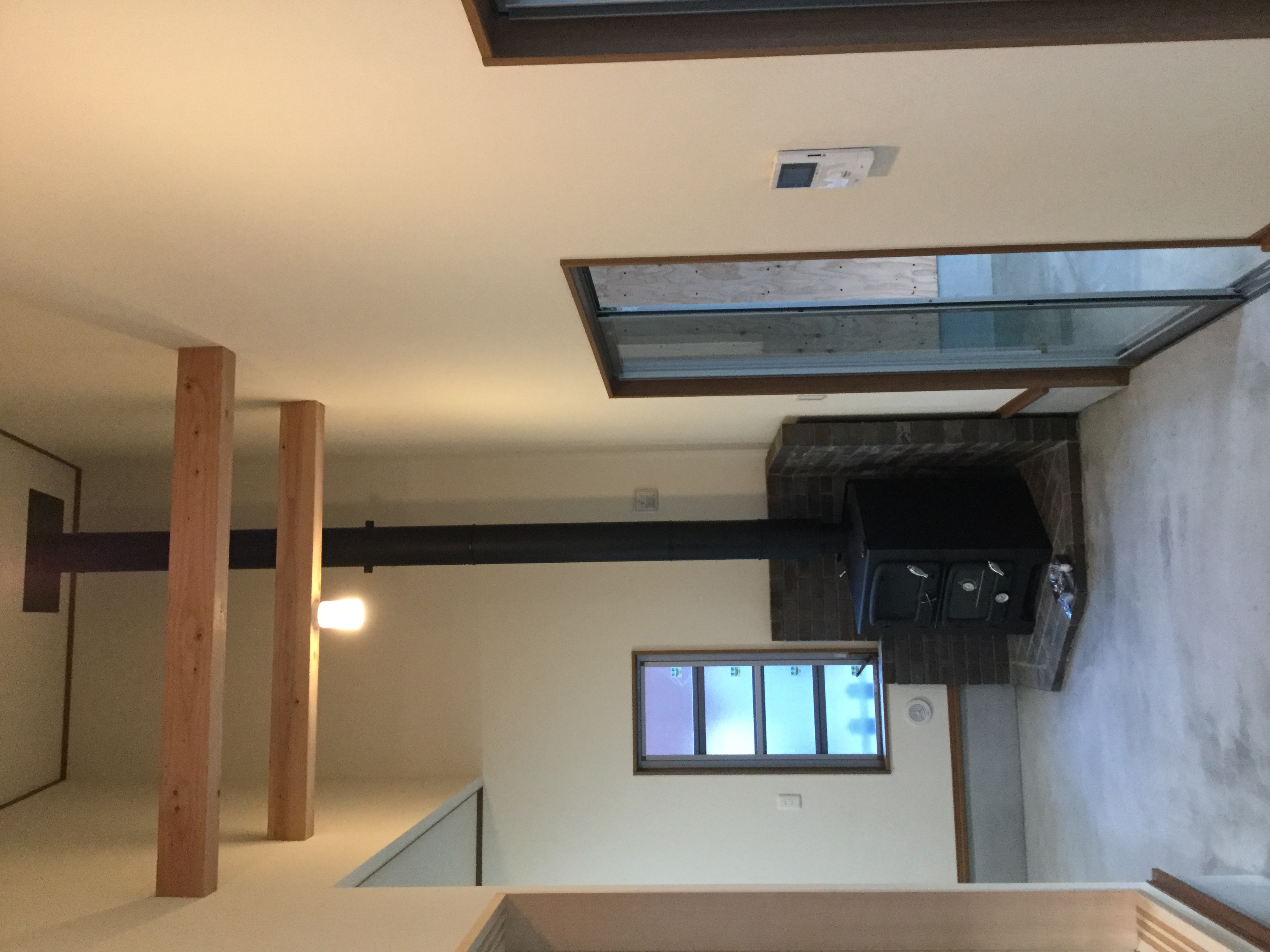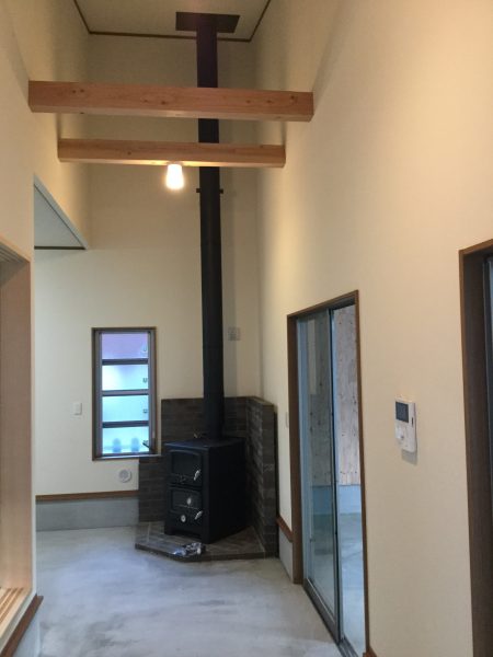 広い土間と薪ストーブのある家