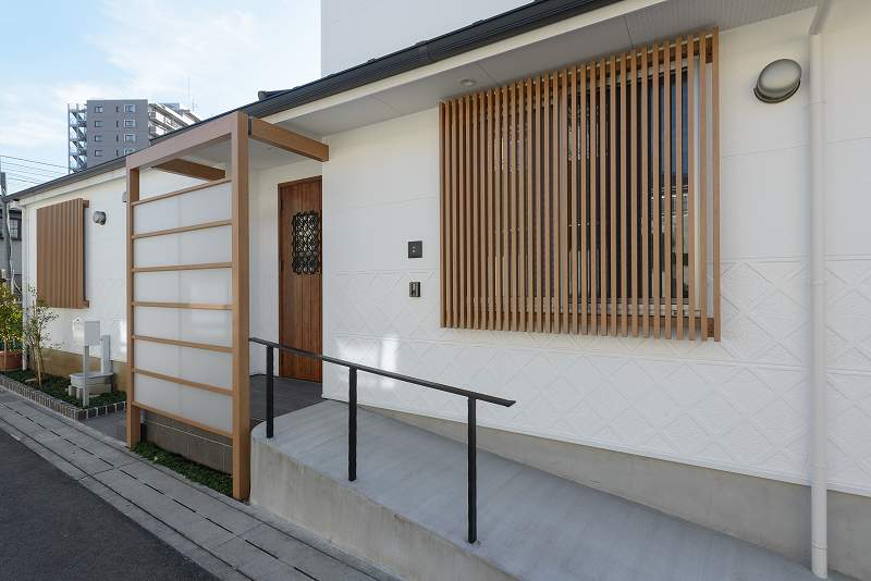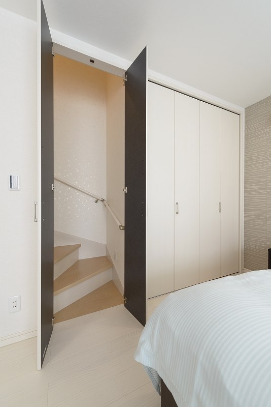 | ポイント | 外装・内装共、白を基調にスッキリとした佇まい。 来客が多いことから各階にキッチンを配し、1階は主に接客用として、2階はプライベートスペースとなっています。 道場は気兼ねなく稽古にいそしめるようセルローズファイバーで防音対策も万全です。休みの時はシアタールームとして活用されています。 |